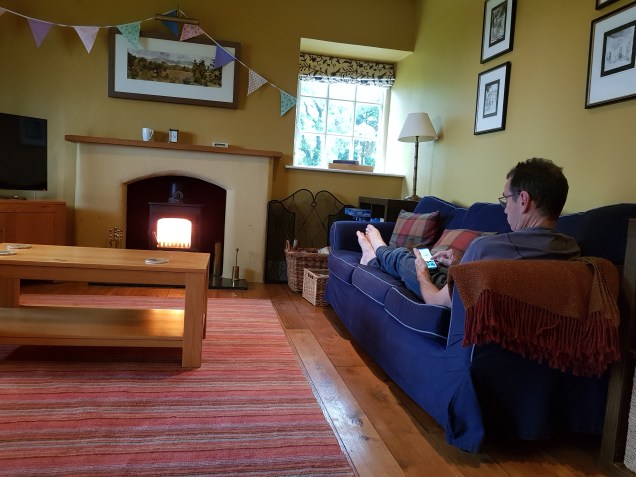 Their lunch was spectacular and with it came free entry to the village. So after they ate they all went for an explore through the village. It appears their adventure was better than ours but that is life. Being a miserable day Jeanette started a fire and I fetched some firewood in. It gave me a great opportunity to catch up on some of this blog and enjoy a glass of wine in front of the fire.